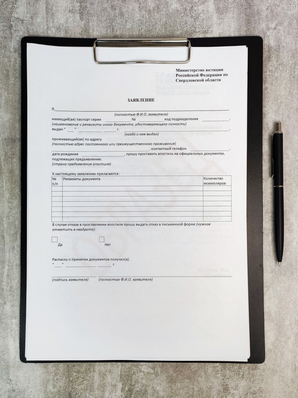 апостиль легализация документ заявление бланк Министерство юстиции образец заявления юриспруденция оформление документов Россия Свердловская область юрист нотариус госуслуги удостоверение личности паспорт подача документов официальная форма делопроизводство бюрократия юридическая процедура госучреждение ручка канцелярия рабочее место офис серый фон апостиль РФ нотариальное действиеПохожие фотографии