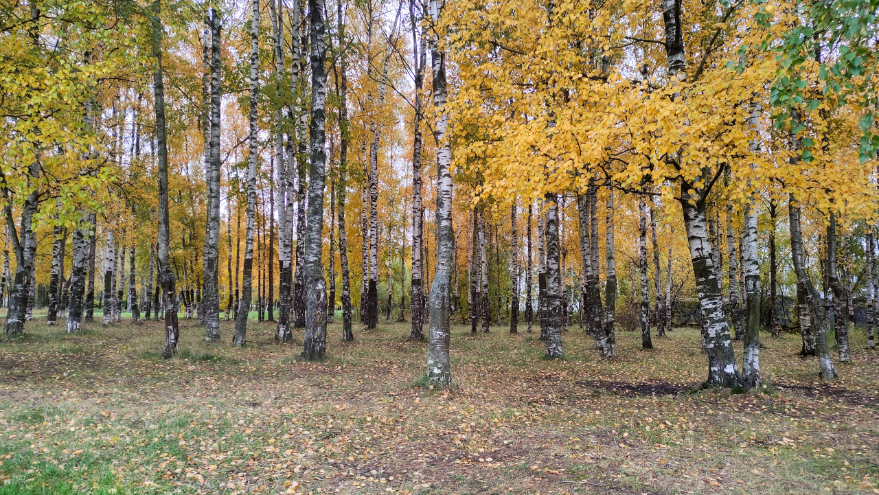 природа пейзаж парк деревья растительность листва осень ландшафт зелень берёзовая роща берёзы жёлтые листья лес роща Ленинградская область Россия сезон ботаника экология листопад лесной массив зелёная трава осенний лес природная зона фотография природы прогулка пейзажная съёмка лесная растительность климат средняя полоса РоссииПохожие фотографии