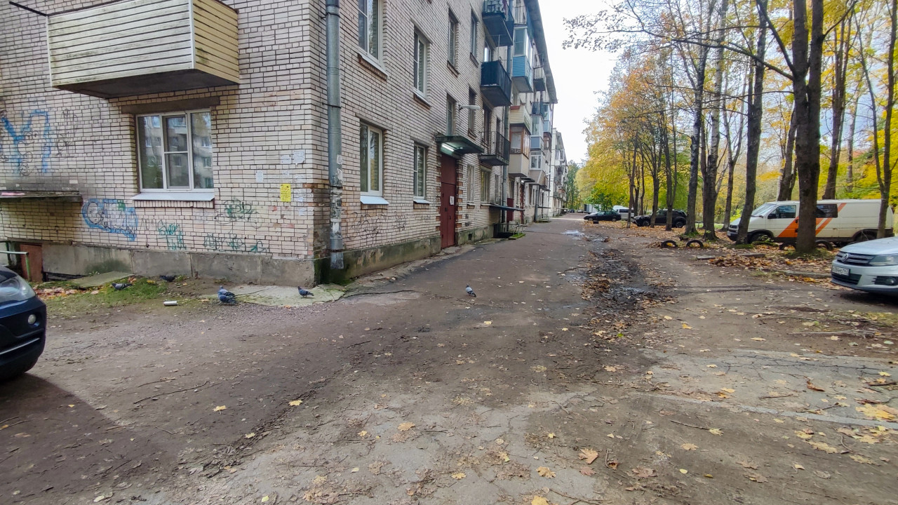 придомовая территория двор дворовая территория двор жилого дома жилой двор жилой квартал спальный район городской двор городская среда благоустройство территория около дома жилой дом пятиэтажка кирпичный фасад балконы автомобили парковка осень листья деревья трещины на асфальте лужи граффити Россия городской пейзаж типовая архитектура советская застройка микрорайон жильё городская жизнь фасад подъезд окна транспорт инфраструктура двор осенью старый дом архитектура СССР уличная сцена урбанистикаПохожие фотографии