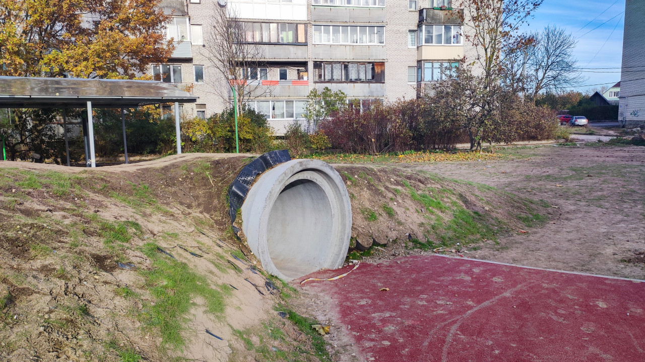 благоустройство детская площадка детские развлечения детский отдых детский досуг детское оборудование игровая зона игровое оборудование игровая площадка игровой комплекс развлечение физическая активность бетонный тоннель игровая конструкция придомовая площадка откос закрепление грунта георешетка эксплуатация МАФ резиновое покрытие дворовая инфраструктура придомовая зона наружные конструкции озеленение откоса инженерный элемент обследование территории содержание двора сезонная эксплуатация укрепление откоса наружное благоустройство техническое состояние общедомовая зона двор площадка для детей безопасность покрытия эксплуатационный осмотрПохожие фотографии