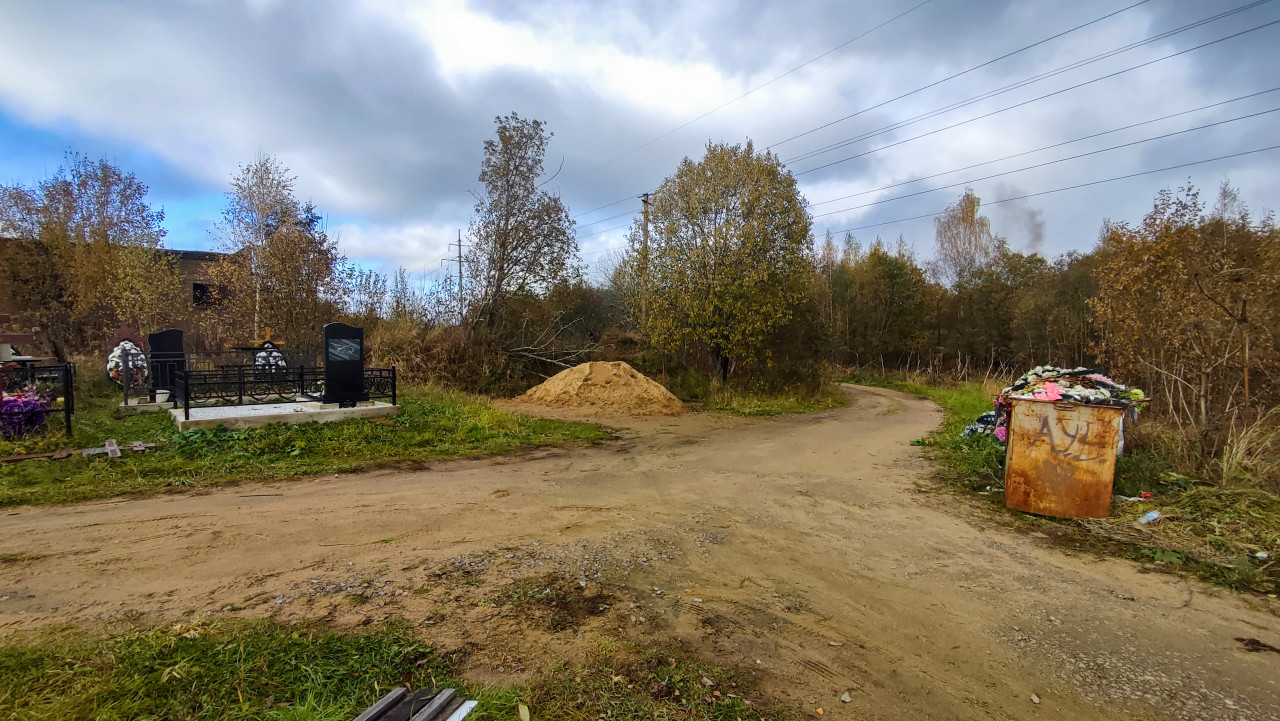 кладбище захоронения надгробия памятники кресты ограды культура памяти траур мемориал погребение ритуальная зона уход за могилами въезд дорога песок контейнер мусор венки искусственные цветы экология благоустройство отходы ритуальные услуги Россия сельская местность дорога к кладбищу деревья осень линии электропередачи инфраструктура уход за территорией пейзаж природная зона коммунальные службы утилизация отходов православные традиции сельское хозяйствоПохожие фотографии
