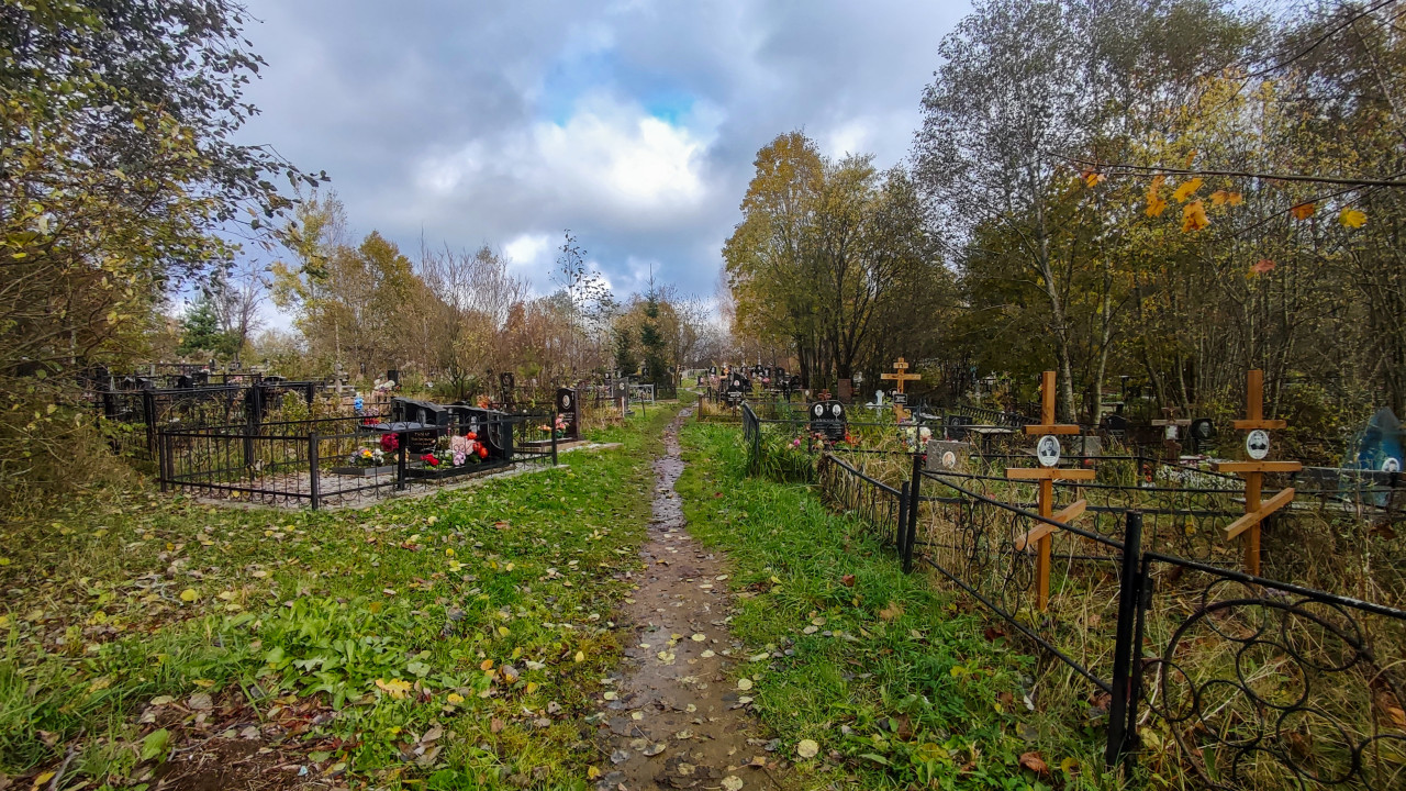 кладбище захоронения надгробия памятники кресты ограды культура памяти траур мемориал погребение ритуальная зона уход за могилами могилы осень дорога тропа листья природа деревья металлическая ограда ритуал российская традиция пейзаж церковное кладбище сезон пасмурный день листва сельская местность религия православие деревня памятник ограждение путь историческая культураПохожие фотографии