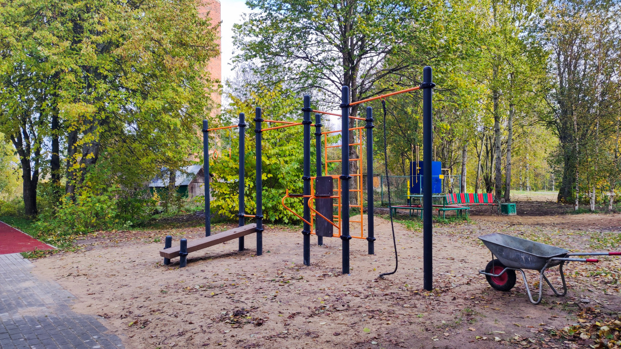 уличный спорт спортивная площадка воркаут тренажёры турники спортивное оборудование общественное пространство благоустройство городская среда активность спорт тренировка физкультура скамья лавка деревья осень общественная зона экология Россия воркаут площадка оборудование спорт на улице физическое развитие инфраструктура резиновое покрытие здоровье спортплощадка парк зелёная зона отдыхПохожие фотографии