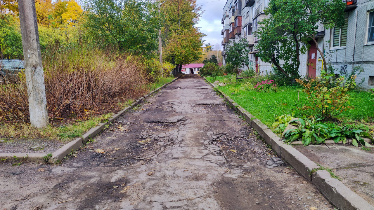 придомовая территория двор дворовая территория двор жилого дома жилой двор жилой квартал спальный район городской двор городская среда благоустройство территория около дома дорога асфальт трещины ямы панельный дом пятиэтажка фасад урбанистика Россия Ленинградская область советская архитектура инфраструктура типовая застройка кустарники деревья бордюр осень многоквартирный дом жильё архитектура СССР железобетон дорога с дефектами урбанизм жильё СССР городской пейзаж улица проездПохожие фотографии