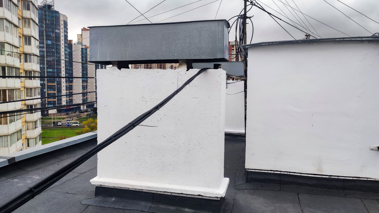плоская кровля крыша кровля вентшахта металлический оголовок кабельные линии инженерные системы кровельная конструкция вентиляционный вывод здание МКД городская инфраструктура наружная вентиляция панельная застройка крыша многоквартирного дома технический узел эксплуатация зданий конструктивный элемент обеспечение вентиляции инженерные выводы городской пейзаж инженерная инфраструктура монтаж вентиляции защитный элемент кровельное оборудование вентиляционный канал инженерное сооружение эксплуатация кровлиПохожие фотографии