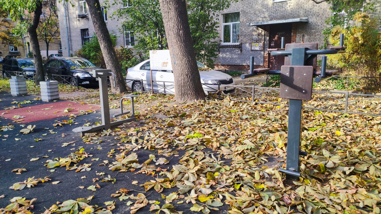уличный спорт спортивная площадка воркаут тренажёры турники спортивное оборудование общественное пространство благоустройство городская среда активность спортивная зона уличные тренажеры придомовая территория эксплуатация объектов дворовая инфраструктура осень опавшие листья резиновое покрытие техническое состояние обслуживание территории оборудование МАФ зеленые насаждения придомовая среда жилье и двор эксплуатационные условия обследование локальное благоустройство сезонный фактор обслуживание площадок двор спорт на улице общедомовая территория придомовая зона содержание инфраструктурыПохожие фотографии