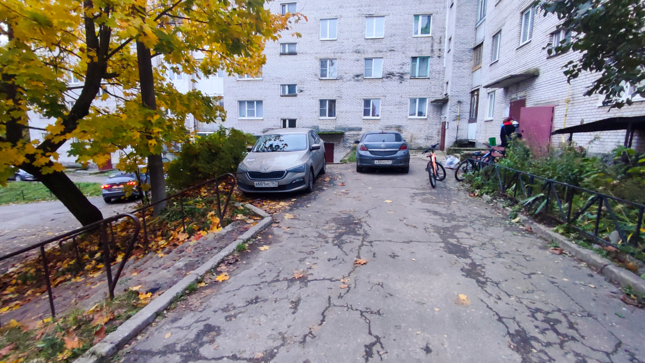 придомовая территория двор дворовая территория двор жилого дома жилой двор жилой квартал спальный район городской двор городская среда благоустройство территория около дома лестница перила автомобили парковка дом фасад кирпичный дом архитектура жильё микрорайон осень листья дерево листвa урбанистика тротуар советская застройка Россия велосипед типовой двор инфраструктура лестничный спуск трещины придомовая зонаПохожие фотографии