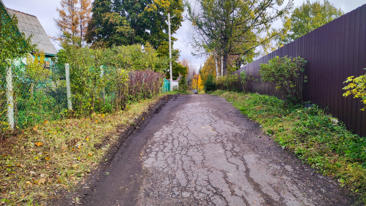 деревня село поселок сельская местность сельский пейзаж загород загородная местность пригород загородная жизнь жизнь за городом провинция сельская жизнь поселение дорога асфальт трещины забор сетка профнастил кустарники деревья осень листья частный сектор Ленинградская область Россия инфраструктура автомобиль дорога вниз пейзаж частные дома благоустройство инженерные сети дорожное покрытие сезонность тротуар деревенская улица экология зелень транспортПохожие фотографии