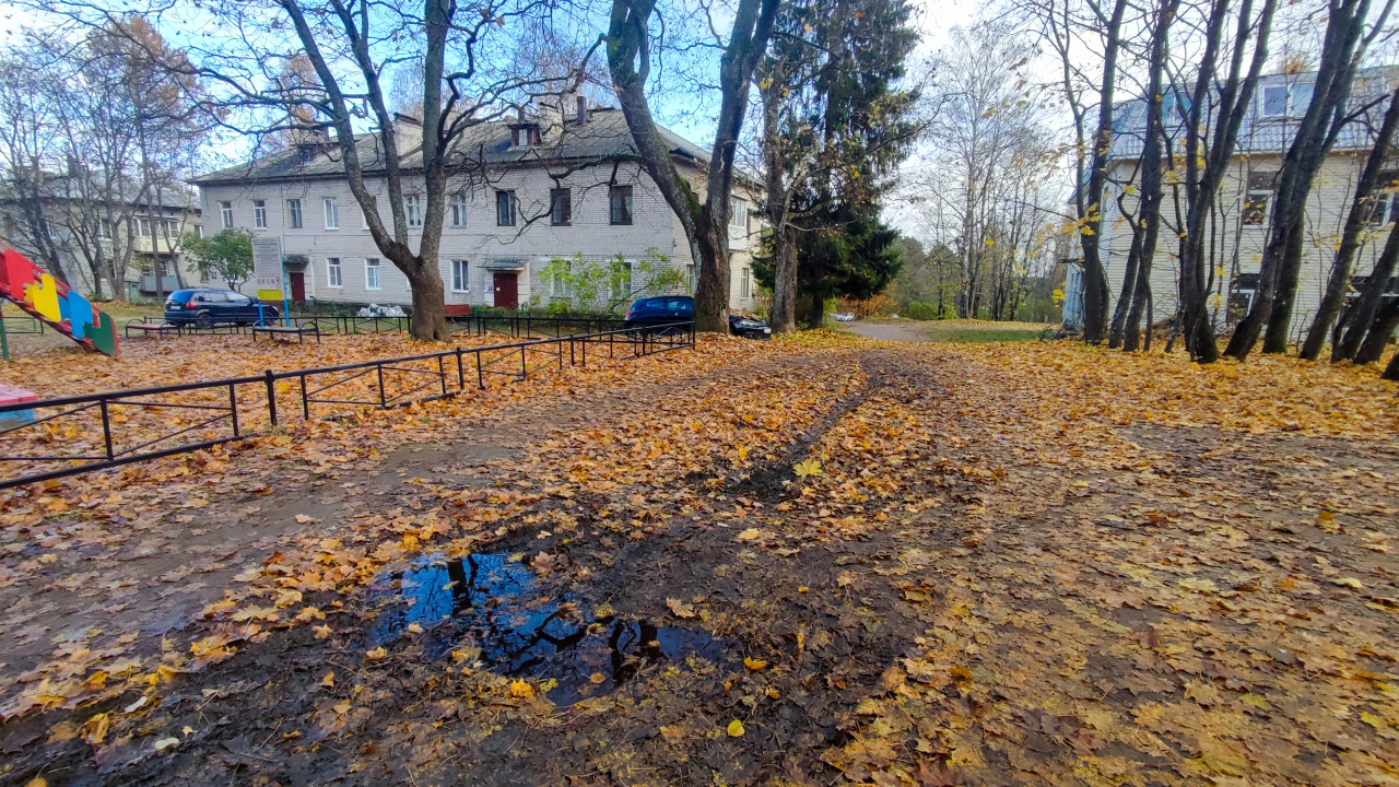 придомовая территория двор дворовая территория двор жилого дома жилой двор жилой квартал спальный район городской двор городская среда благоустройство территория около дома осень грунтовая дорога детская площадка листья деревья жилые дома городской пейзаж общественное пространство сезонность опавшая листва лужа отражение междомовой проезд придорожная зона инфраструктура двора зелёная зона микрорайон населённый пункт пешеходная территория придомовая инфраструктура межквартальная связка уличная среда дворовая зона жильё двор без асфальтаПохожие фотографии