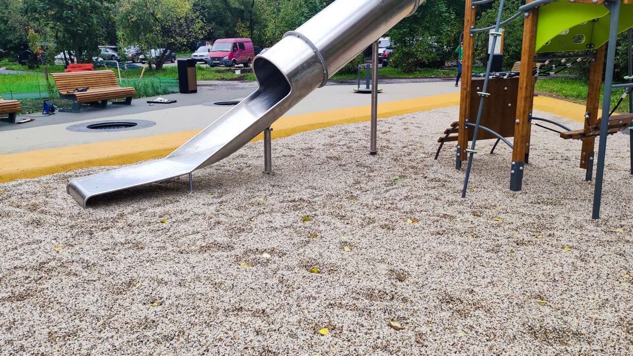 благоустройство детская площадка детские развлечения детский отдых детский досуг детское оборудование игровая зона игровое оборудование игровая площадка игровой комплекс развлечение физическая активность горка металл нержавеющая сталь гравий безопасность городская среда Россия Ленинградская область оборудование архитектура инфраструктура двор общественное пространство дети отдых проектирование материалы урбанистика ландшафт игровые элементы монтаж зона отдыха безопасность детей стандарты качества капремонт двора инженерия уличное оборудование игровые площадкиПохожие фотографии