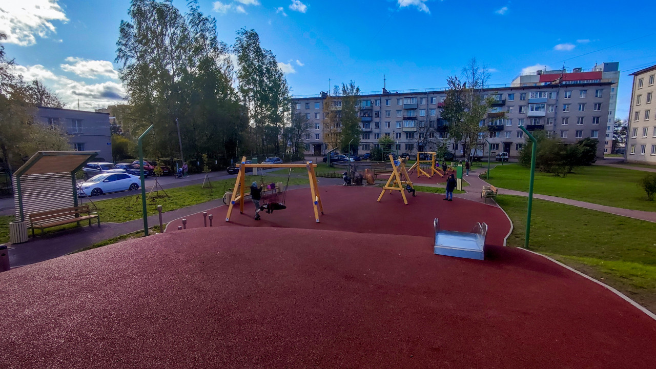 благоустройство детская площадка детские развлечения детский отдых детский досуг детское оборудование игровая зона игровое оборудование игровая площадка игровой комплекс развлечение физическая активность качели горка городская среда жильё многоквартирный дом инфраструктура архитектура тротуар навес лавочка урна дети родители Ленинградская область Россия общественное пространство резиновое покрытие безопасность инженерия строительство озеленение газон урбанистика благоустройство двора муниципальный проект комфортная среда городская инфраструктура двор отдыхПохожие фотографии