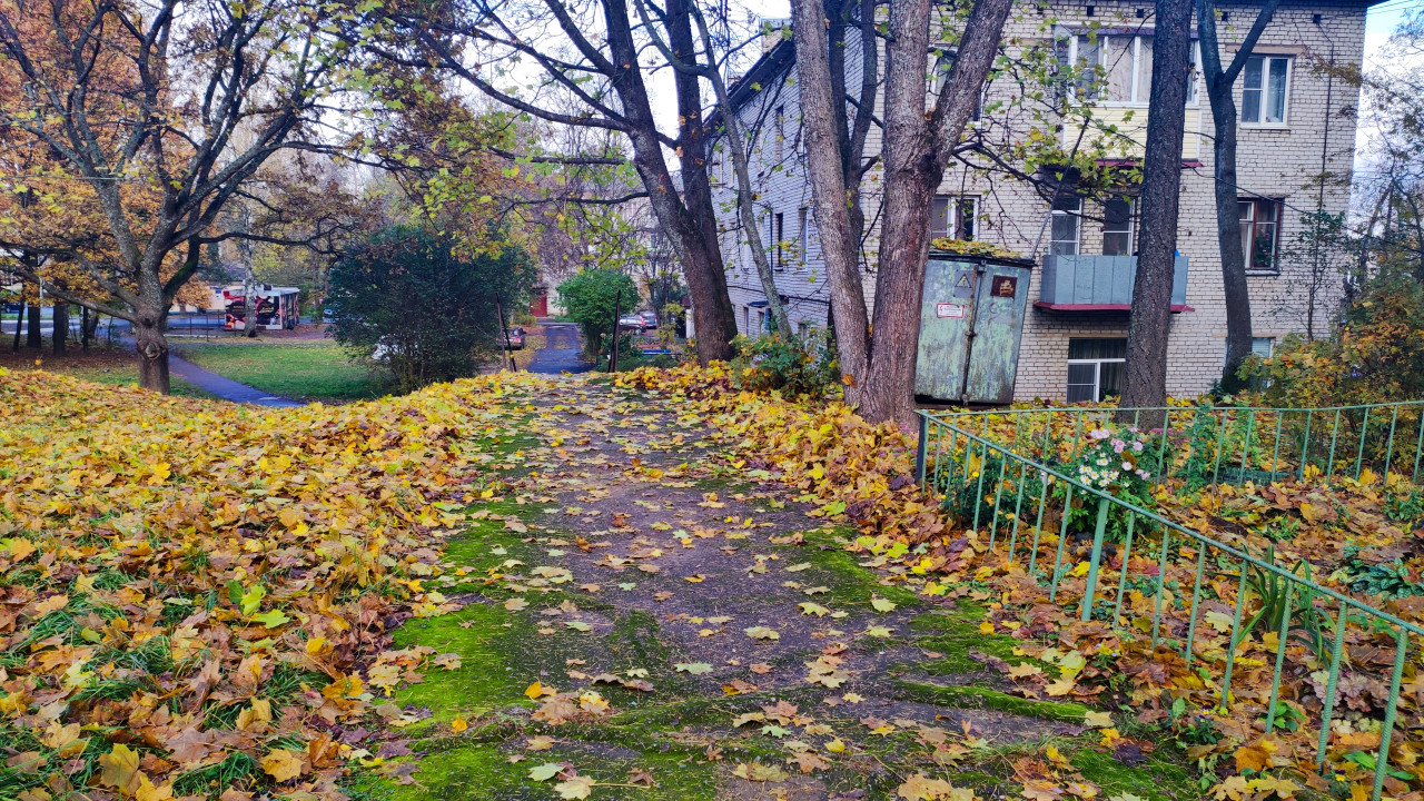 придомовая территория двор дворовая территория двор жилого дома жилой двор жилой квартал спальный район городской двор городская среда благоустройство территория около дома тротуар дорожка асфальтовое покрытие опавшие листья мох зарастание швов сезонные работы содержание территории эксплуатация покрытия листопад деформация дорожки общедомовая зона наружное покрытие обслуживание тротуаров обследование дефекты благоустройства проезд к дому пешая зона уход за территорией влажность покрытия накопление листвы техосмотр территорииПохожие фотографии