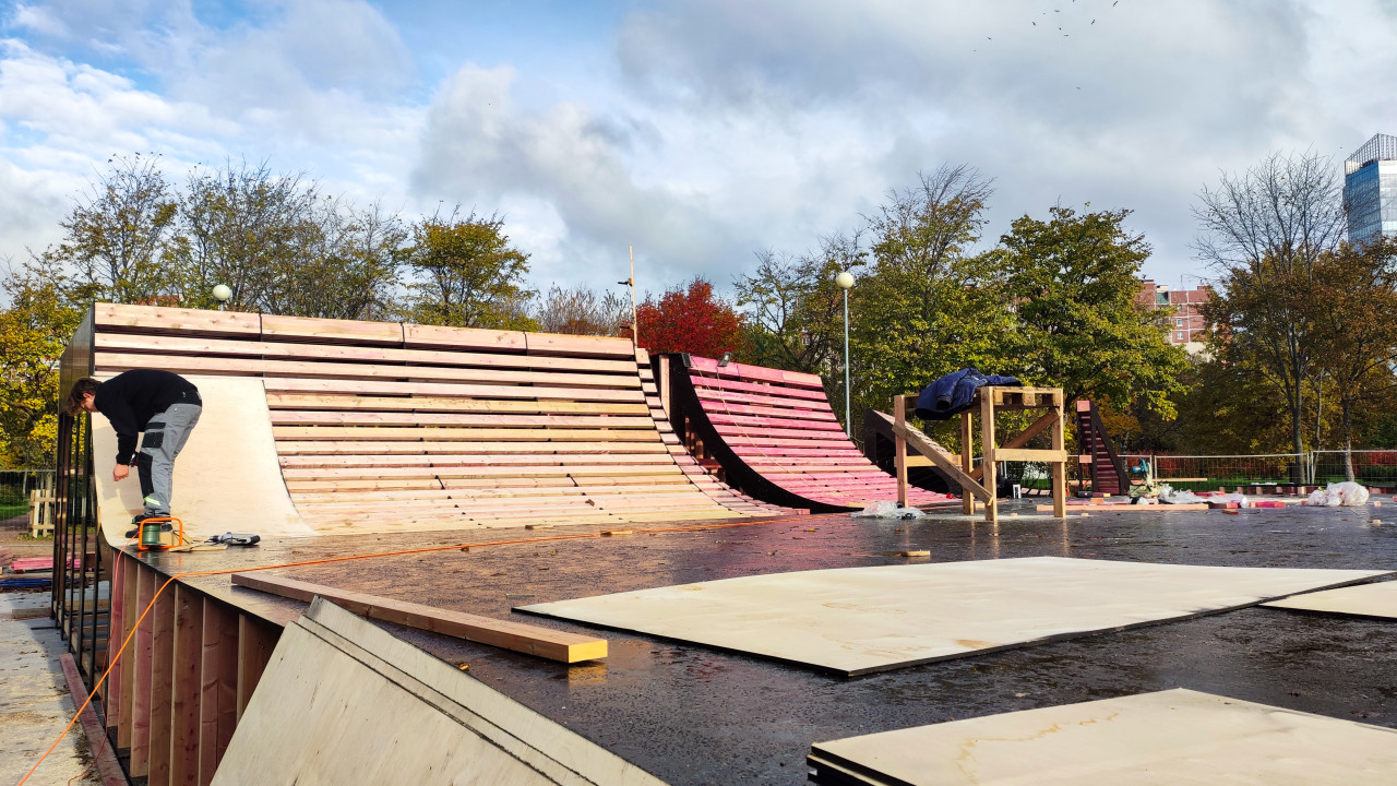 благоустройство благоустройство территории стройплощадка строительная площадка строительные работы строительство строительный участок рампа фанера монтаж скейт парк спортивные объекты инженерные работы архитектура наружные работы деревянная конструкция спортивное сооружение общественное пространство проектирование инфраструктура урбанистика архитектурная форма инженерия монтажные работы строительство объектов архитектура города спортивная инфраструктура парк деревянные материалы технология строительства строительные процессы осеньПохожие фотографии