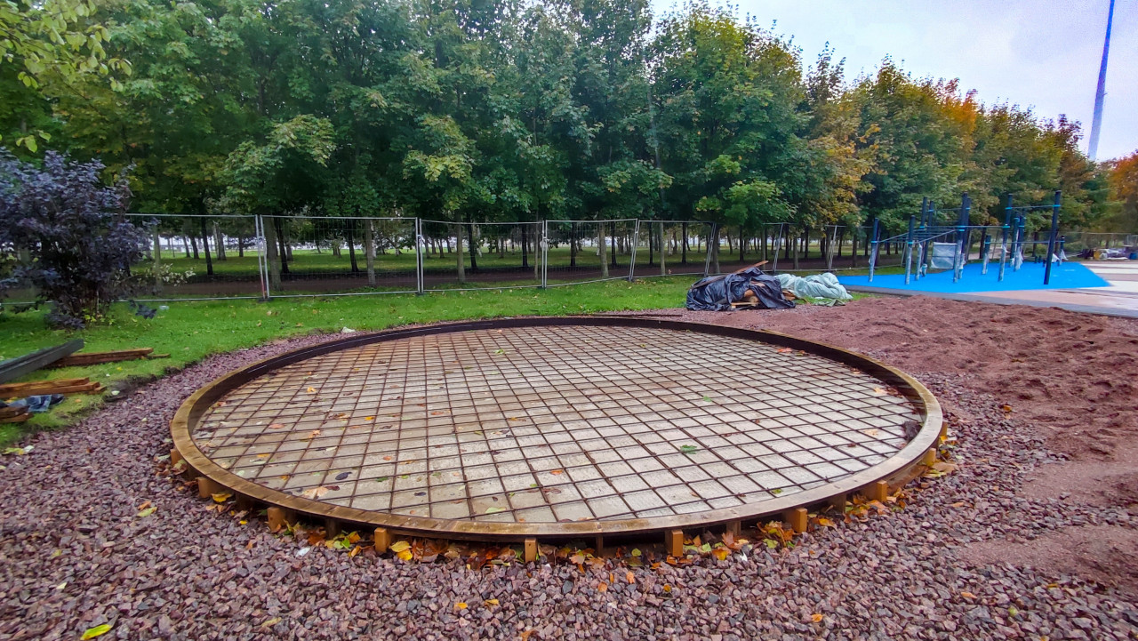 строительная площадка стройка стройплощадка строительный участок строительство строительные работы армирование бетон опалубка круглая площадка арматура подсыпка гравий парк благоустройство ландшафт инженерные конструкции общественное пространство инфраструктура подготовка основания заливка бетона Санкт Петербург спортивная площадка строительство фундамента технология армирования строительный процесс урбанистика бетонные конструкции строительные технологии каркас инженерия строительство парка городская средаПохожие фотографии