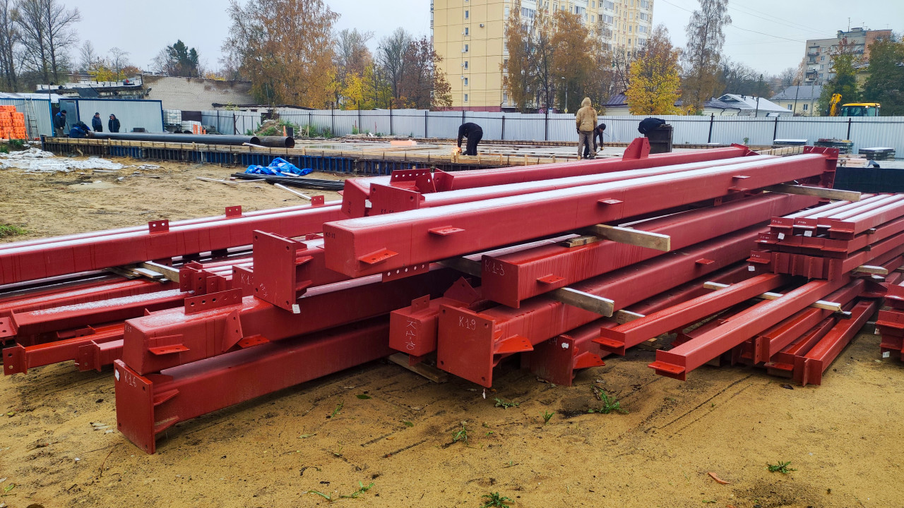 Металлоконструкции каркаса котельной, складированные на стройплощадке
