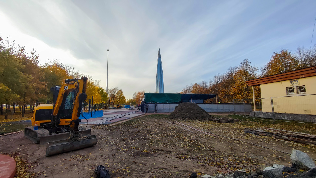 строительная площадка стройка стройплощадка строительный участок строительство строительные работы благоустройство экскаватор спецтехника гусеничная техника JCB ремонт территории общественное пространство Лахта центр Санкт Петербург городской парк реконструкция осенний пейзаж многофункциональный комплекс архитектурная доминанта небоскреб городская среда инфраструктура подготовка основания благоустройство парка полигон для укладки рабочий процесс техника на объекте Россия Северо ЗападПохожие фотографии
