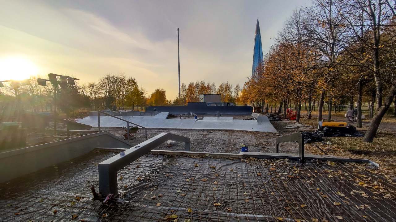 Строительство скейт-парка на фоне башни «Лахта-центр»