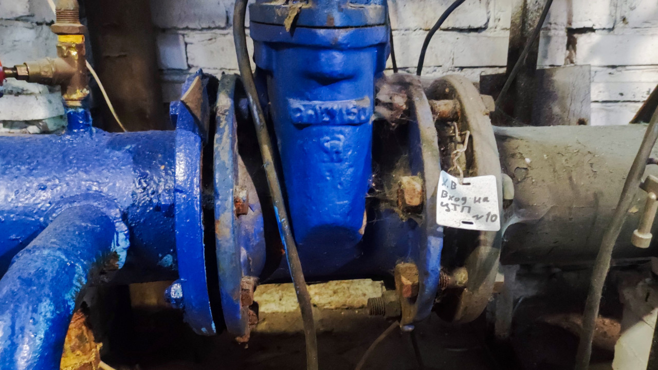 Задвижка на трубопроводе в техническом помещении