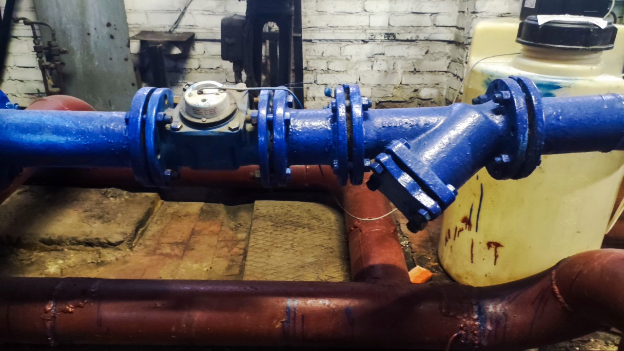 Узел учета воды и фильтр грубой очистки в инженерной системе здания