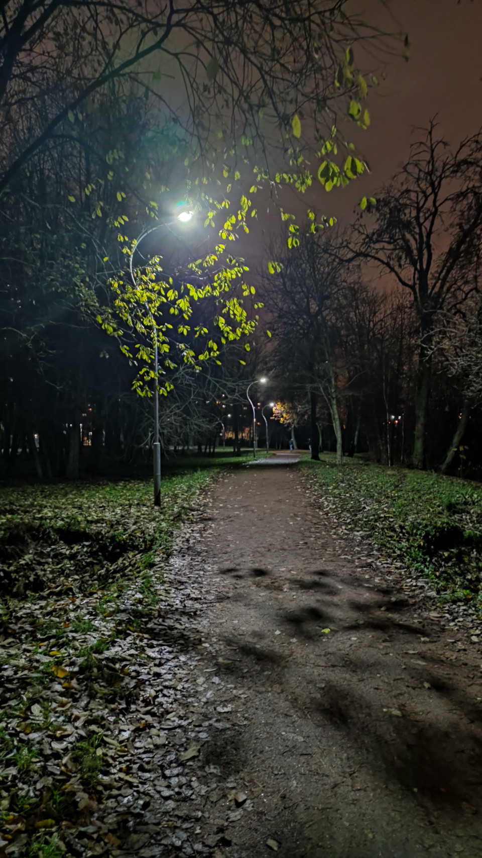 городской парк парк аллея освещение ночь фонарь дорожка осень город пешеходная зона благоустройство деревья освещённый путь листья влажная почва общественное пространство уличное освещение безопасность инфраструктура городской пейзаж пешеходный маршрут тротуар фонари прогулка сумерки сезон освещённая дорога зелёная зона городской дизайн природа в городеПохожие фотографии