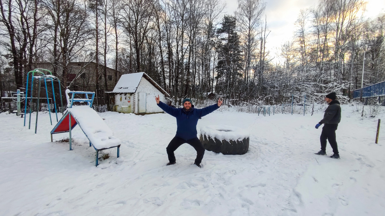 детская площадка игровое оборудование благоустройство монтаж общественное пространство двор городская среда детская инфраструктура установка оборудования социальная среда зима уличное игровое оборудование снег зимний период пригород люди на улице дворовая территория лес на фоне горка открытая территория покрышка на площадке сезонность рекреационная зона прогулка зимой досуг следы на снегу небольшое строение деревья без листвы мокрый снег уличная активность окружающая среда эксплуатация площадок зимой пригородная застройка зимний пейзажПохожие фотографии