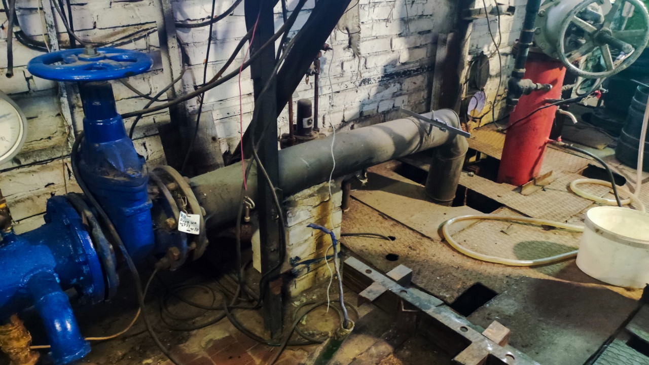 Рабочая зона теплового узла ЦТП с насосами и распределительными линиями