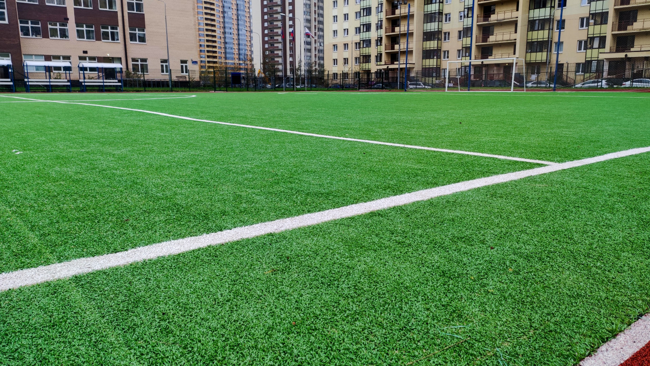 Искусственное покрытие футбольного поля рядом со школой