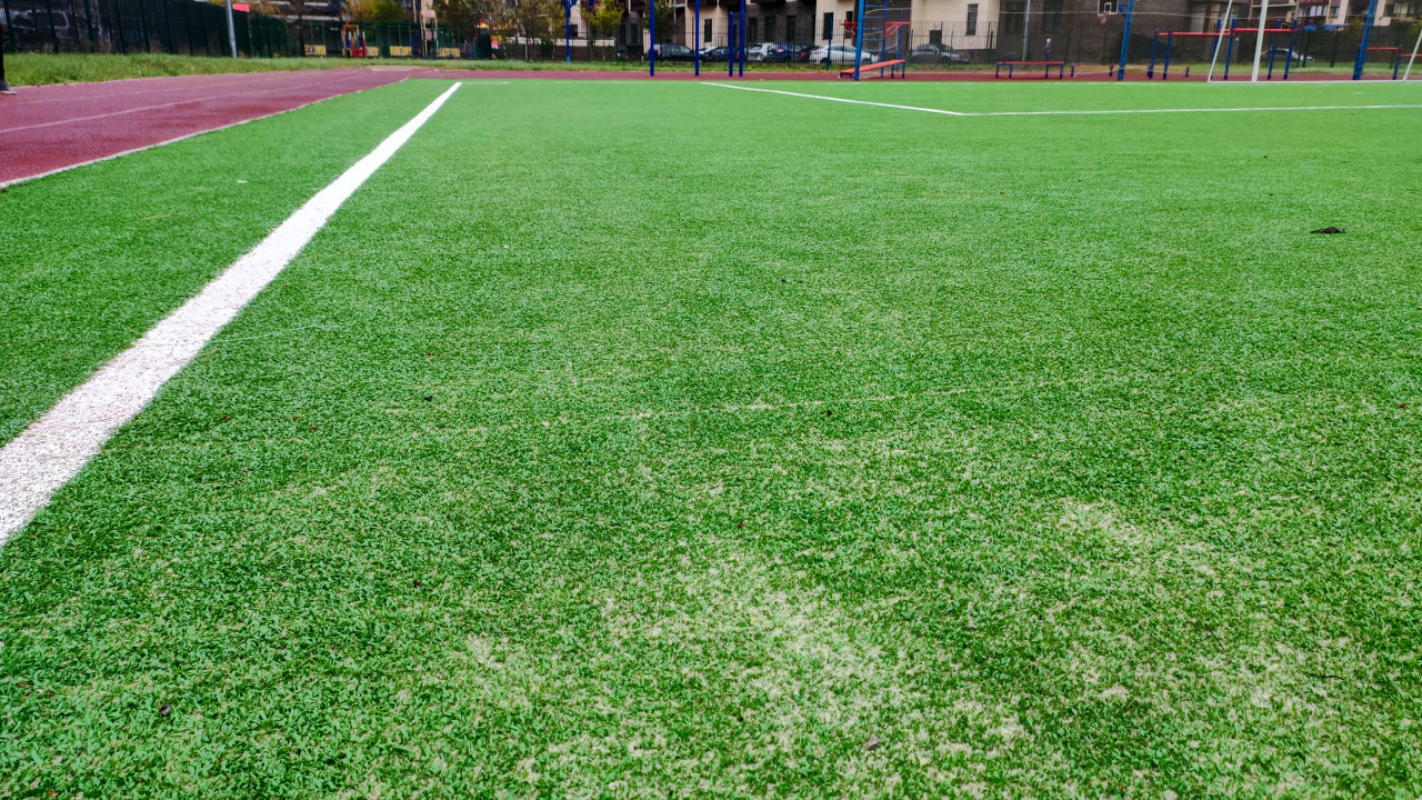 Искусственный газон и разметка на спортивном поле