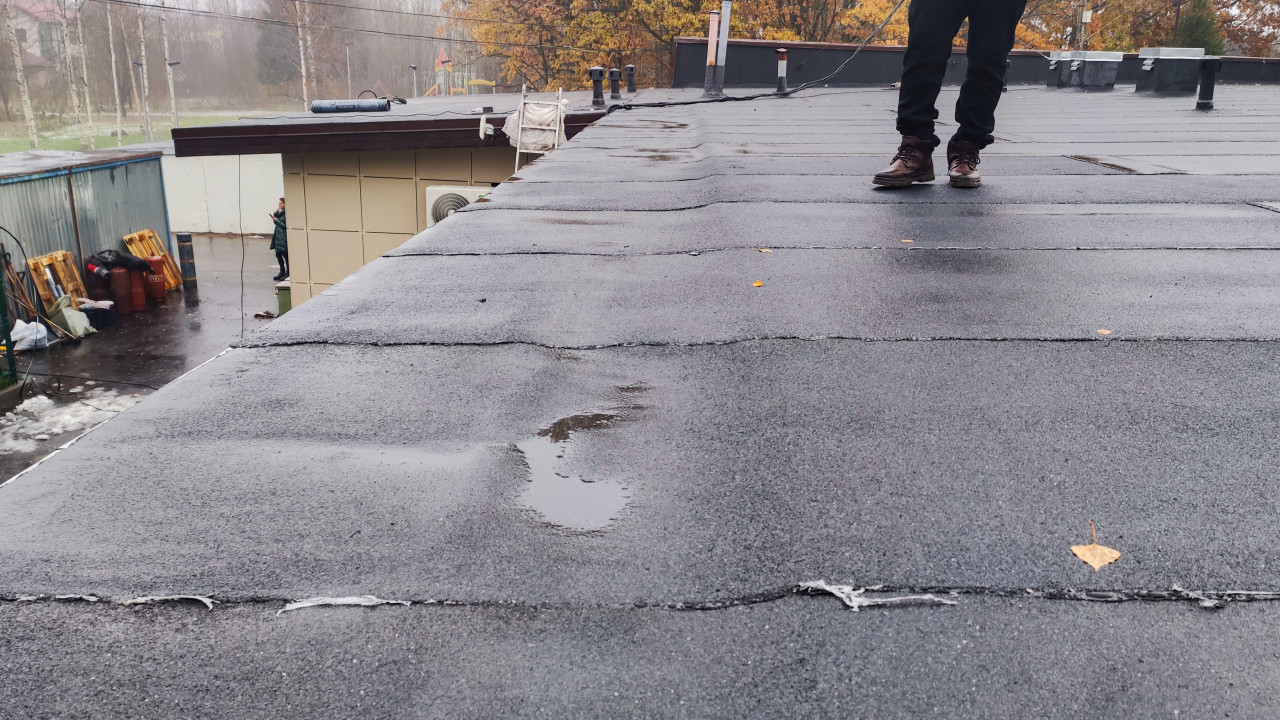 крыша ремонт крыши крыша здания износ кровельные работы ремонт кровли повреждения крыши кровля кровельное покрытие крыша дома проход трубы герметизация битум рулонная кровля обследование дефекты кровли ремонт инженерные коммуникации техническое состояние строительная экспертиза герметичность монтаж дождевая погода осень коррозия здание фотофиксация технический осмотр обследование кровли металлическая труба узел прохода кровельный узел эксплуатация здания гидроизоляция строительный контроль инженерные системы дефект покрытия вздутие кровли мягкая кровля инженерное обследование плоская крыша вентиляция влажная кровля инженер обследование здания дефект мокрая поверхность строительная диагностика контроль качества осмотр кровлиПохожие фотографии