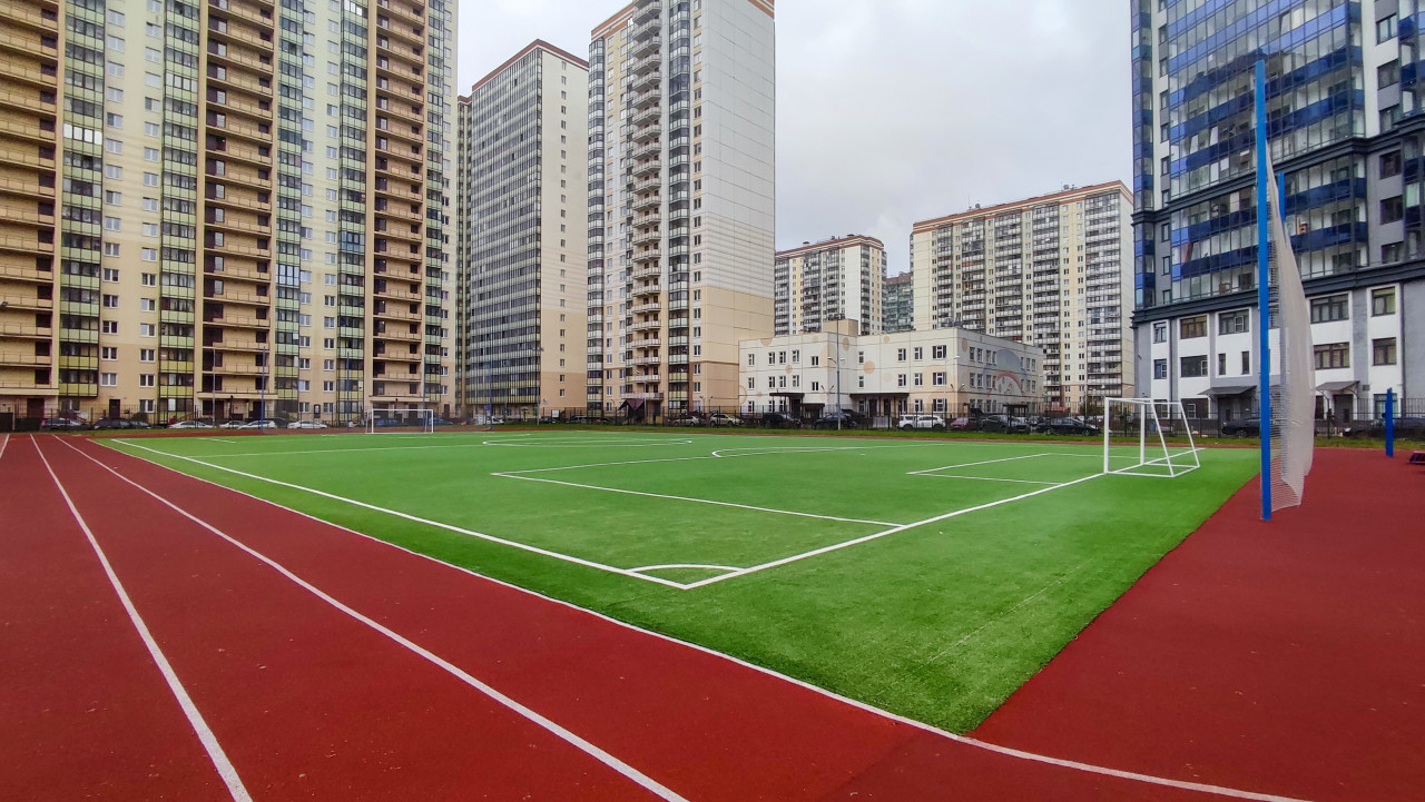 Футбольное поле с искусственным покрытием во дворе жилого комплекса