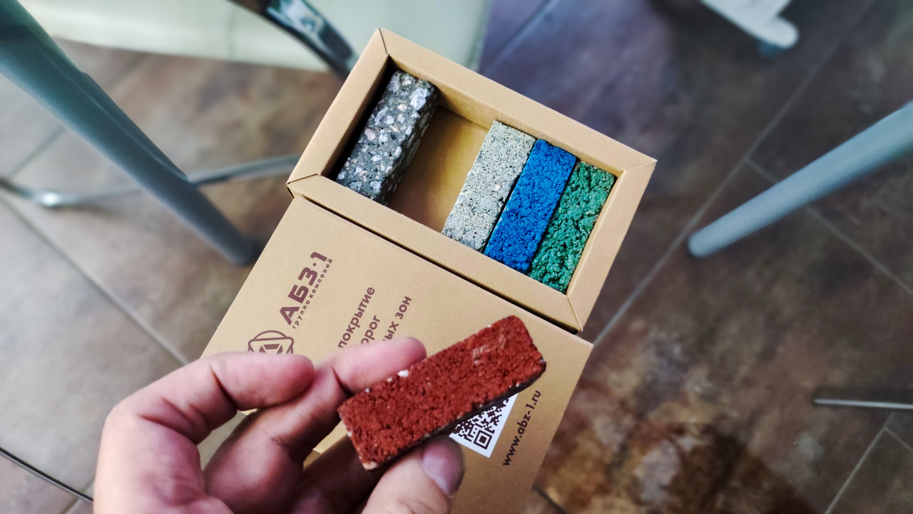 образцы покрытия строительные материалы демонстрационный набор тротуарное покрытие презентация упаковка образец рука демонстрация покрытие набор фактура промышленность продукт инновации тротуар дорожная технология QR код технический образец офис показ архитектурное благоустройство городская среда ассортимент сырьё демонстрационный комплект изделие строительный секторПохожие фотографии