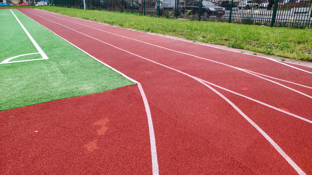 Беговые дорожки с резиновым покрытием возле футбольного поля