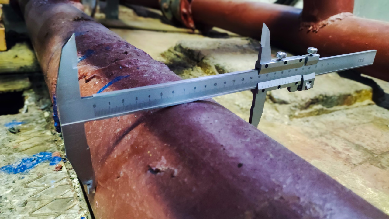 трубопровод измерение диаметра штангенциркуль инженерные сети контроль размеров техническая диагностика техосмотр промышленная инфраструктура визуальный контроль замер трубы наружный диаметр стальная труба красный трубопровод техконтроль диагностика труб измерительный инструмент ревизия эксплуатация оборудования обследование водоснабжение теплоснабжение промышленная среда трубная арматура инспекция техосвидетельствование промышленный объект трубная линия проверка параметров техническая эксплуатация дефектовка обслуживание инженерных системПохожие фотографии