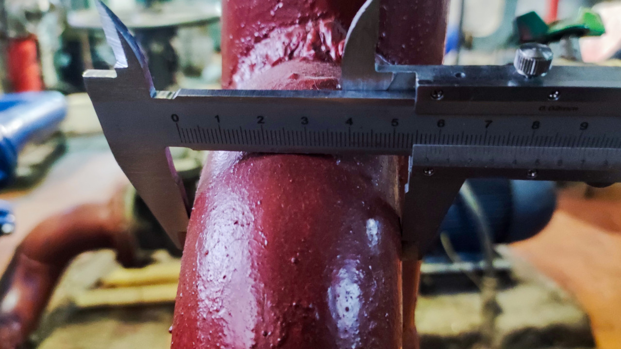 Замер наружного диаметра участка трубопровода штангенциркулем