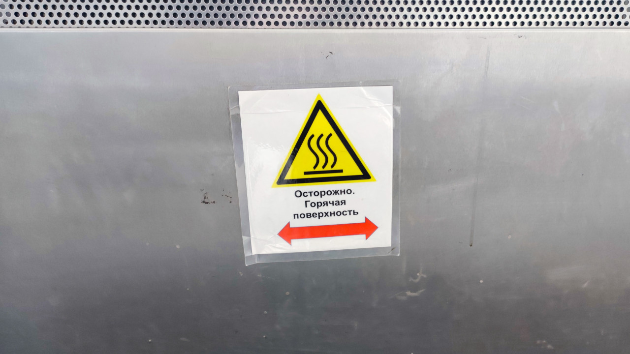 Предупреждающий знак о горячей поверхности в общественном помещении