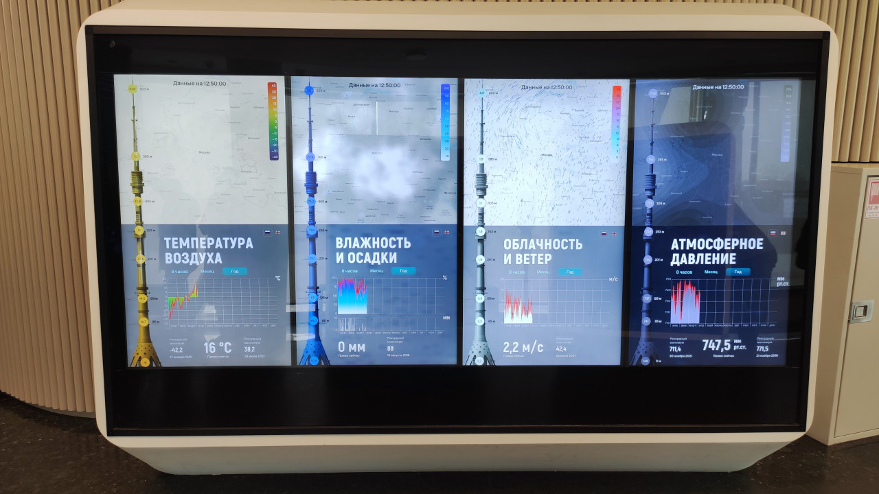 останкинская башня москва интерактивный экран информационная панель цифровая визуализация Останкинская башня метеоданные температура влажность ветер атмосферное давление информация цифровой дисплей музейная экспозиция инженерное сооружение телебашня Москва информирование наука образовательный объект реальное время высотный объект визуализация погода статистика экспозиционная зона туризм публичное пространство интерфейсПохожие фотографии
