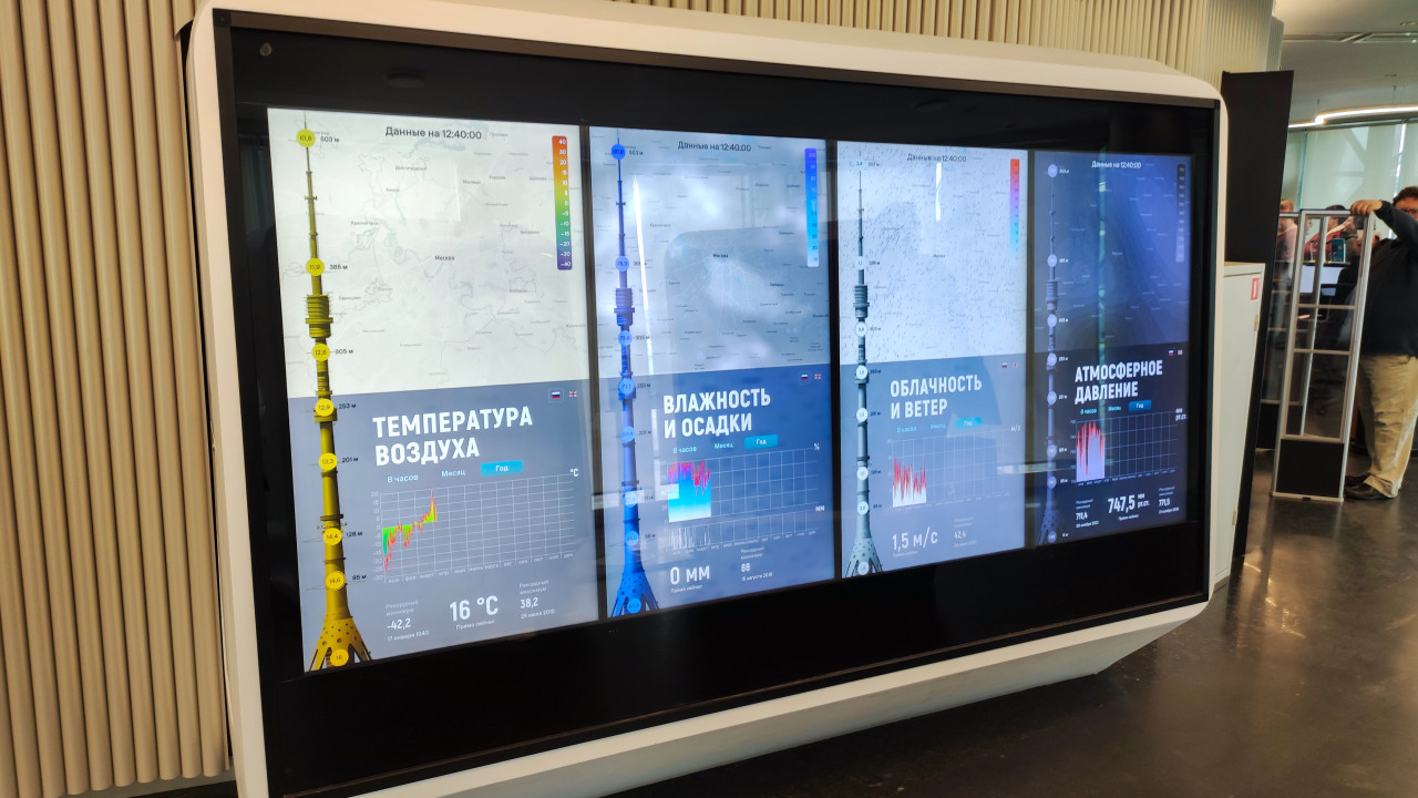 останкинская башня москва интерактивный экран информационная панель цифровая визуализация Останкинская башня метеоданные цифровая панель мониторинг погода климат Москва телебашня наблюдения инфраструктура инженерное сооружение научная информация высотные измерения технология атмосферное давление влажность температура публичная экспозиция информационный экран городской сервис инженерное наследие строительство 1967 года научный объект цифровая система выставочное пространствоПохожие фотографии
