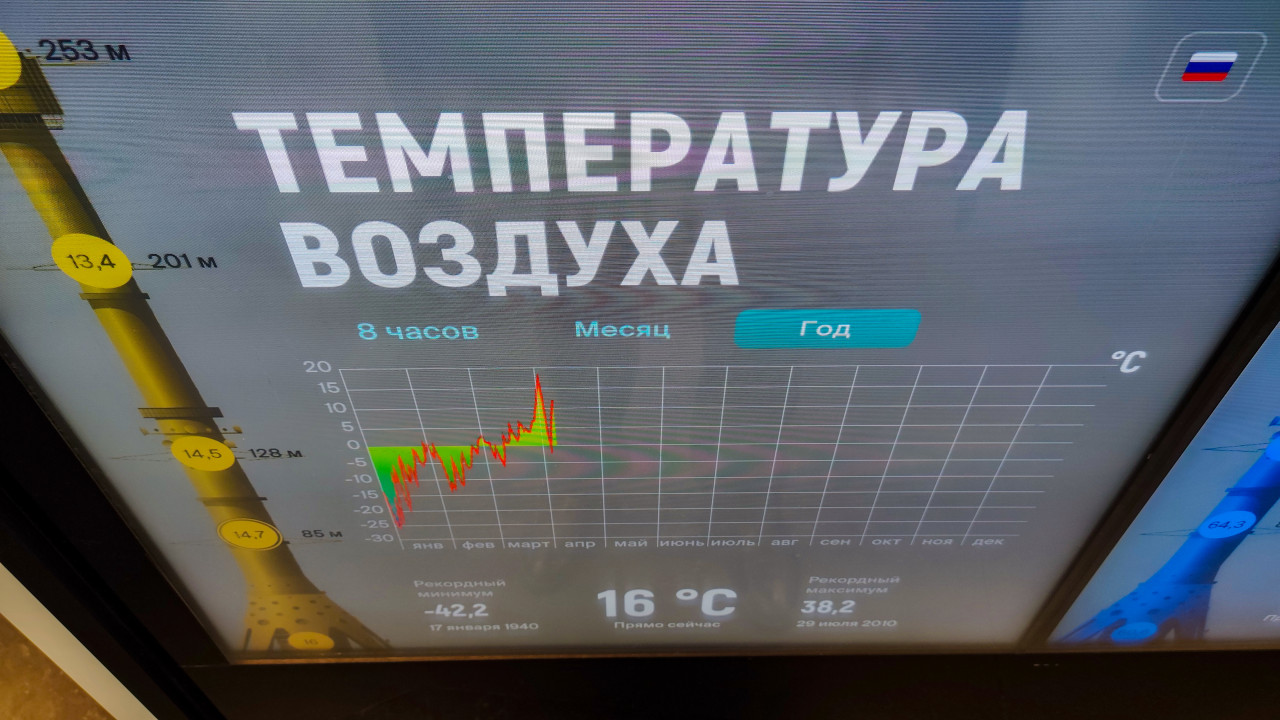 останкинская башня москва интерактивный экран информационная панель цифровая визуализация температура график погода метеоданные цифровой дисплей Москва телебашня Останкино климат измерения данные мониторинг городской сервис метеоинфраструктура информирование визуализация статистика годовой график экран технология метеонаблюдение высотные измерения инфраструктура публичный стенд иллюстрацияПохожие фотографии