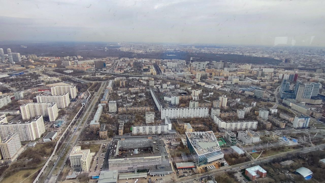 Обзорный вид жилых кварталов Москвы со смотровой площадки Останкинской башни