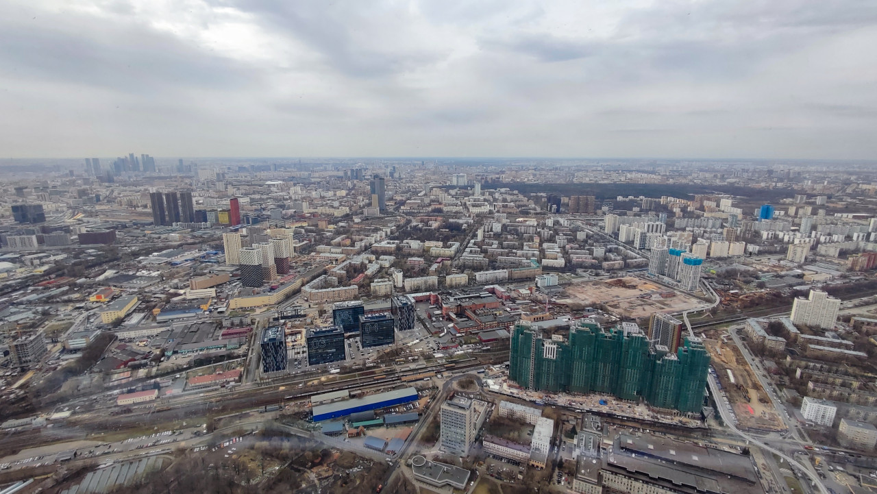 Расширенный панорамный вид на Москву с высоты Останкинской башни