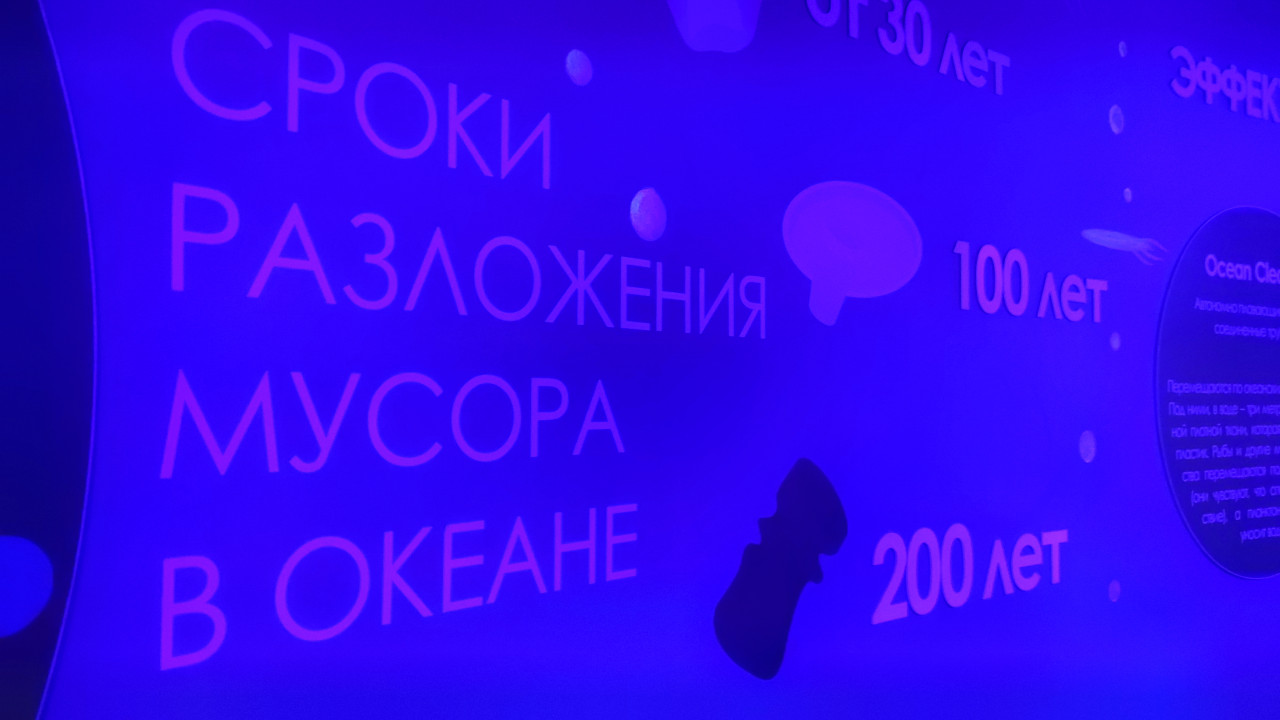 Информационный стенд в Москвариуме о сроках разложения мусора в океане