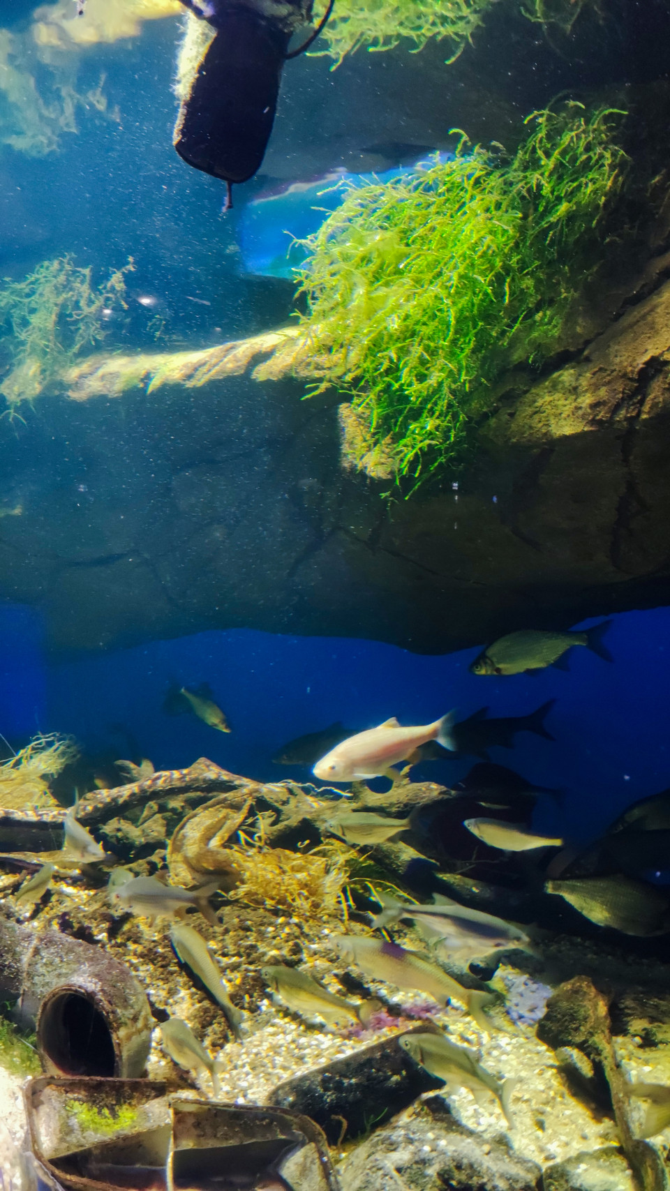 Подводный фрагмент экспозиции с растительностью и пресноводными рыбами