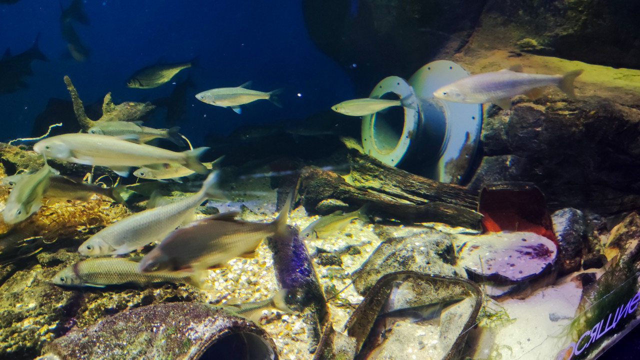 Аквариум с примерами бытового загрязнения пресноводной среды в Москвариуме