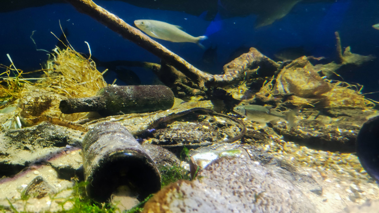 Аквариум с примерами загрязнения пресноводной среды в Москвариуме