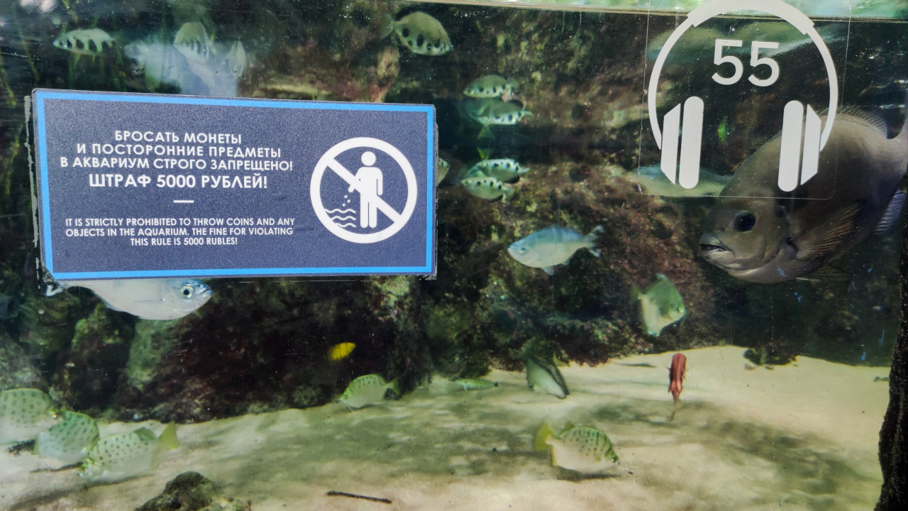 Предупреждающая табличка на аквариуме Москвариума
