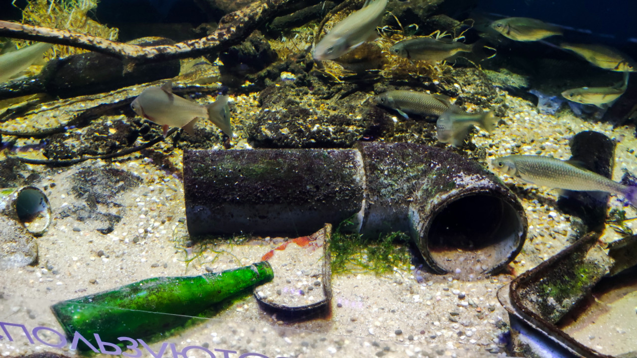 москвариум вднх океанариум аквариум рыбы трубы стеклянная тара загрязнение техногенные объекты песчаное дно водоросли пресноводная экосистема Москвариум ВДНХ обрастание инсталляция экология охрана природы визуальная демонстрация подводная среда экспозиция биоразнообразие водные ресурсы музейная зона проблема отходов наблюдение экопросвещение искусственная средаПохожие фотографии
