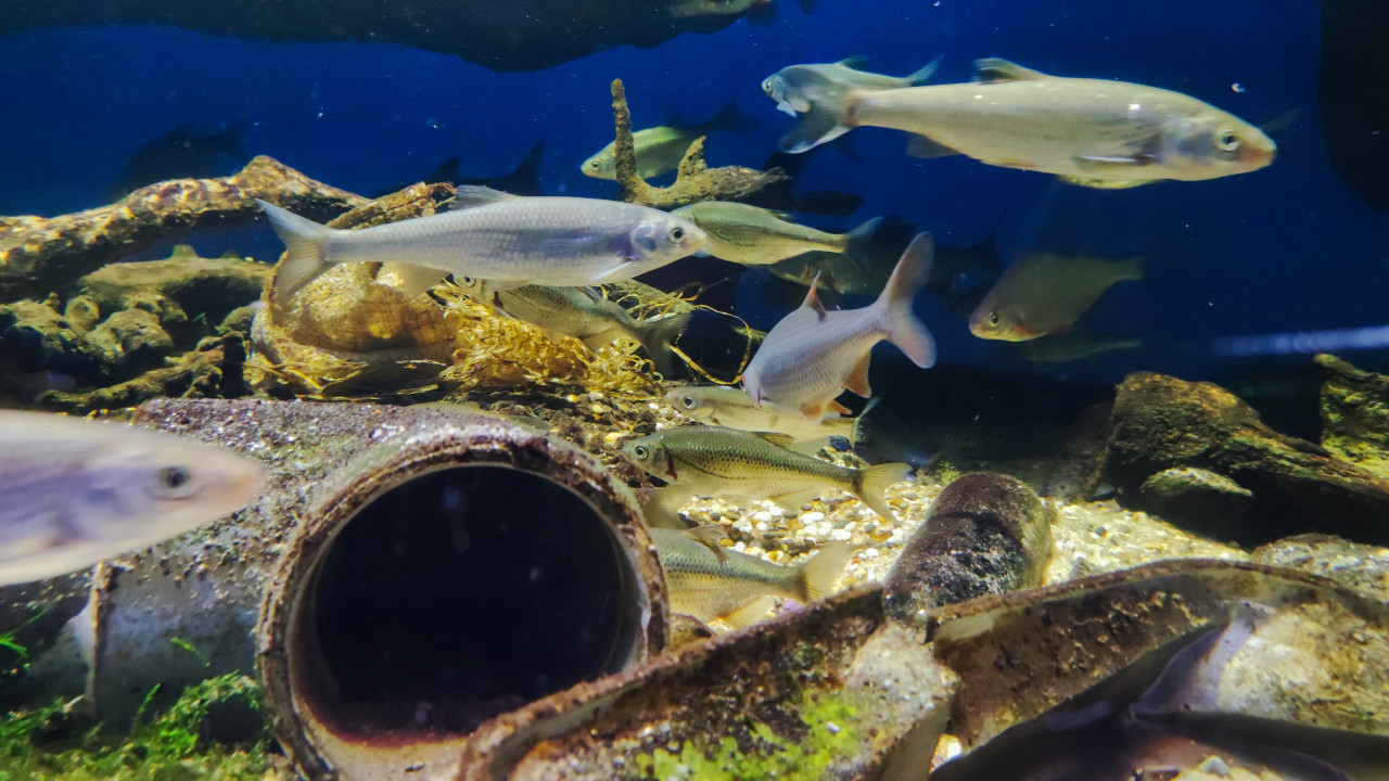 москвариум вднх океанариум рыбы подводная экспозиция трубы донный мусор пресноводная среда стекло металл коррозия антропогенный след экология иллюстрация загрязнение вод водоросли демонстрация аквариум модель водоёма экопросвещение отходы ржавчина пластиковые фрагменты песчаное дно биота природоохранная тема пресноводная экосистема визуальный материал устойчивое развитиеПохожие фотографии