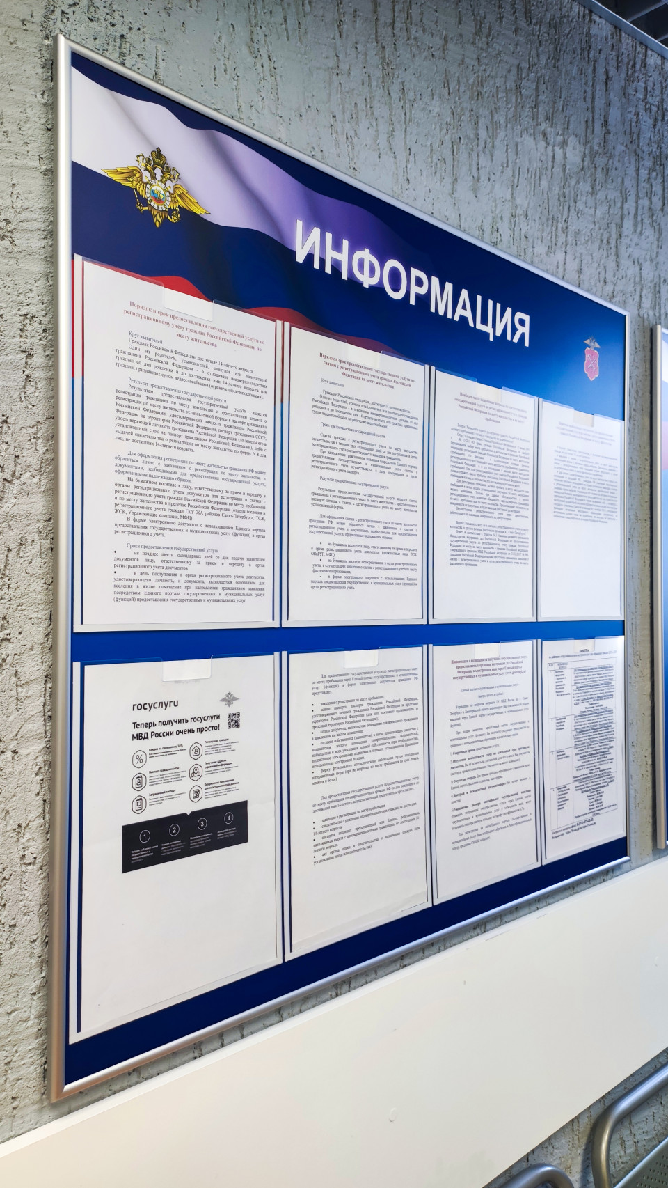 мвд госуслуги информационный стенд документы ведомство государственное учреждение административная информация публичная информация электронные госуслуги МВД нормативные документы Россия ведомственный интерьер официальный портал регламент прием граждан административная сфера бумажные материалы правовая база информирование цифровизация флаговая символика герб справка коридор организация данных оформление структураПохожие фотографии