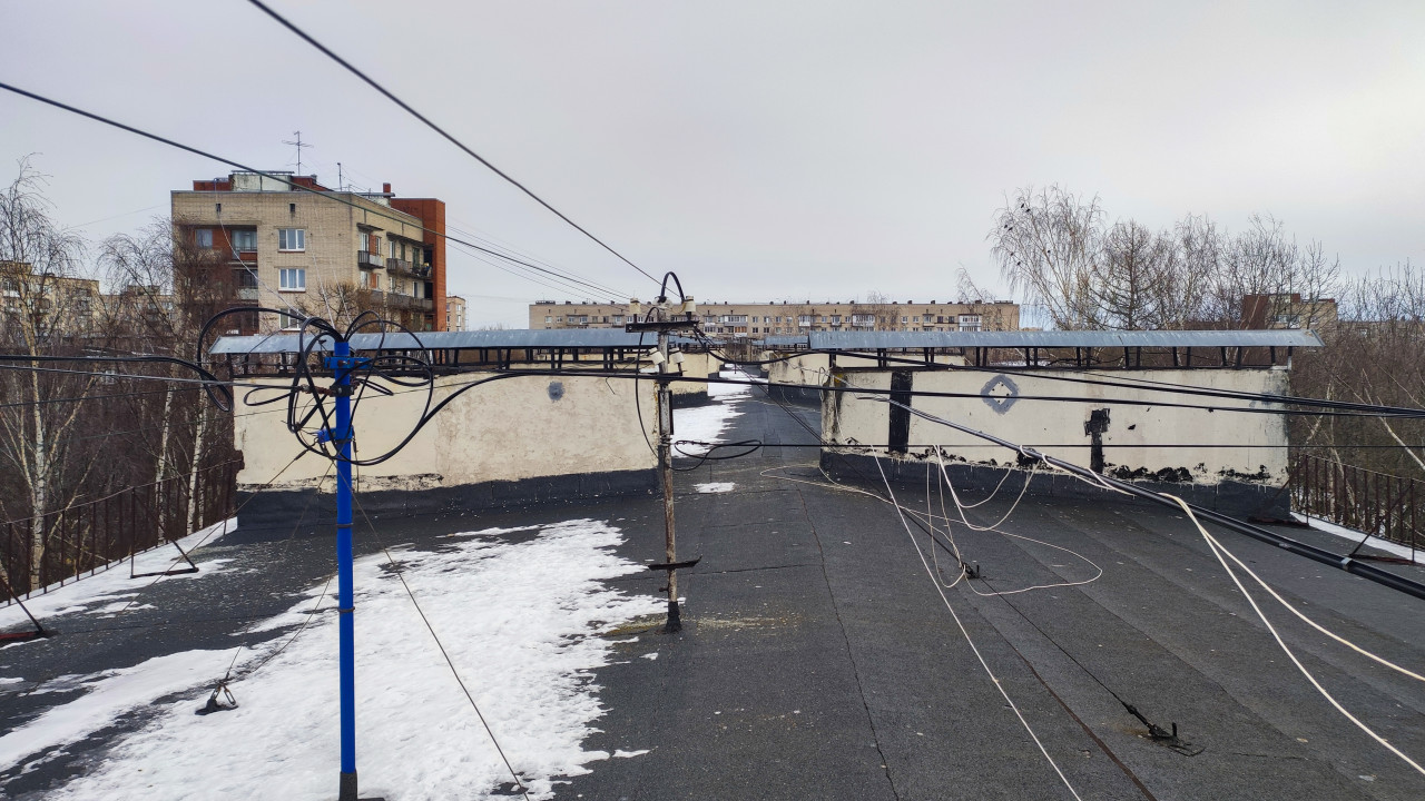 крыша кровля снег зима многоквартирный дом старый фонд советская застройка провода кабели антенна стойки инженерные сети плоская кровля многоэтажка городская инфраструктура связь растяжки техническая зона эксплуатация вентиляционные шахты коммунальные услуги урбанистика инженерные системы дом высота монтаж обслуживание телекоммуникации ЖКХ климатПохожие фотографии