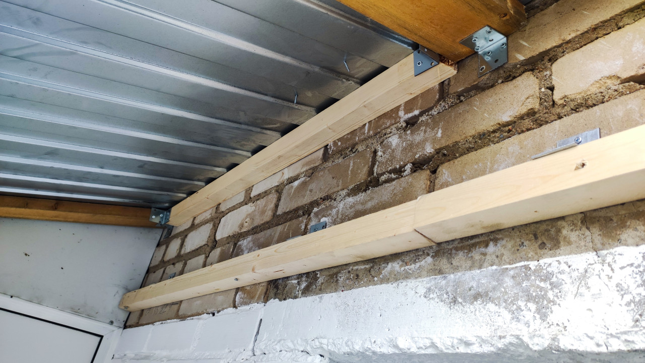 Внутренняя обрешётка под кровлю на кирпичной стене лоджии